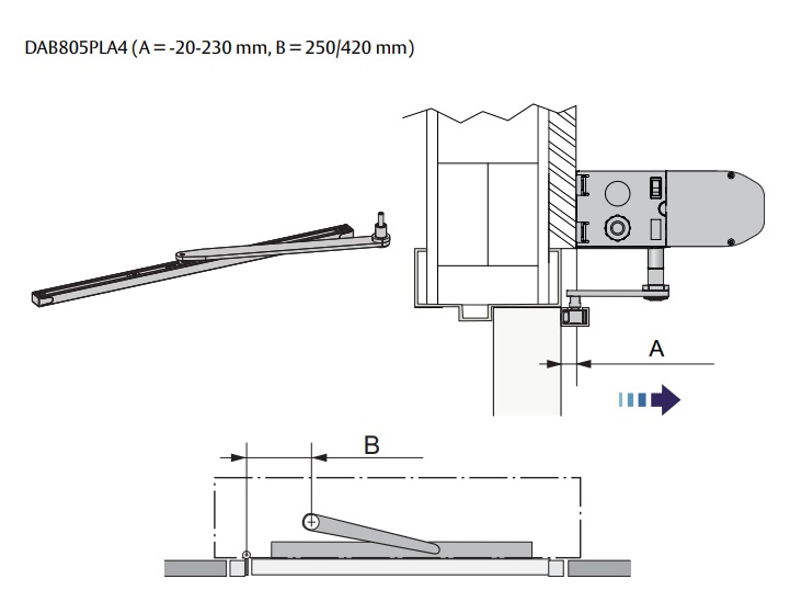 Schuifarm voor het opentrekken van intensief geruikte deuren via de DAB305 aandrijving.