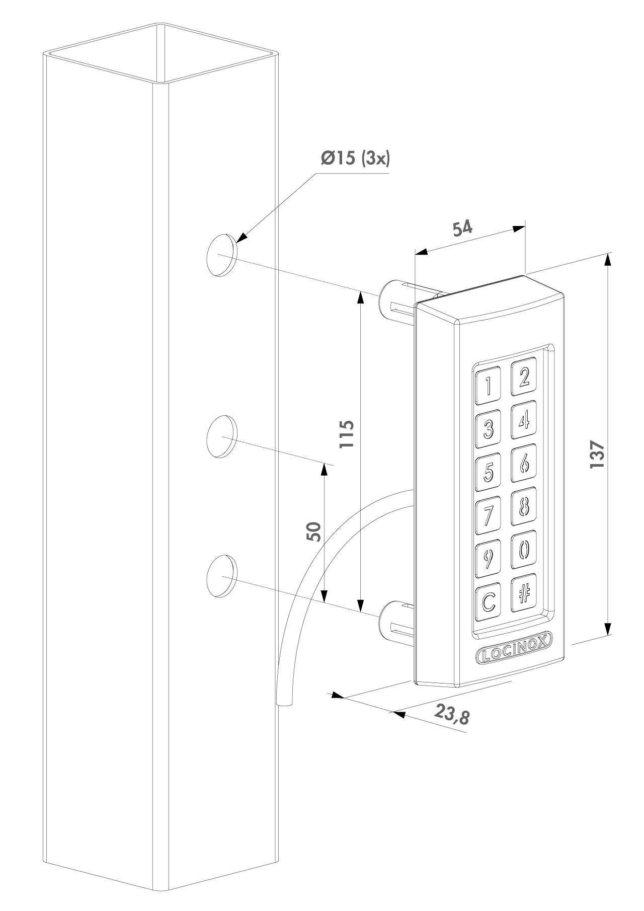 Clavier à code avec 2 contacts NO/NG intégrés en couleur argent