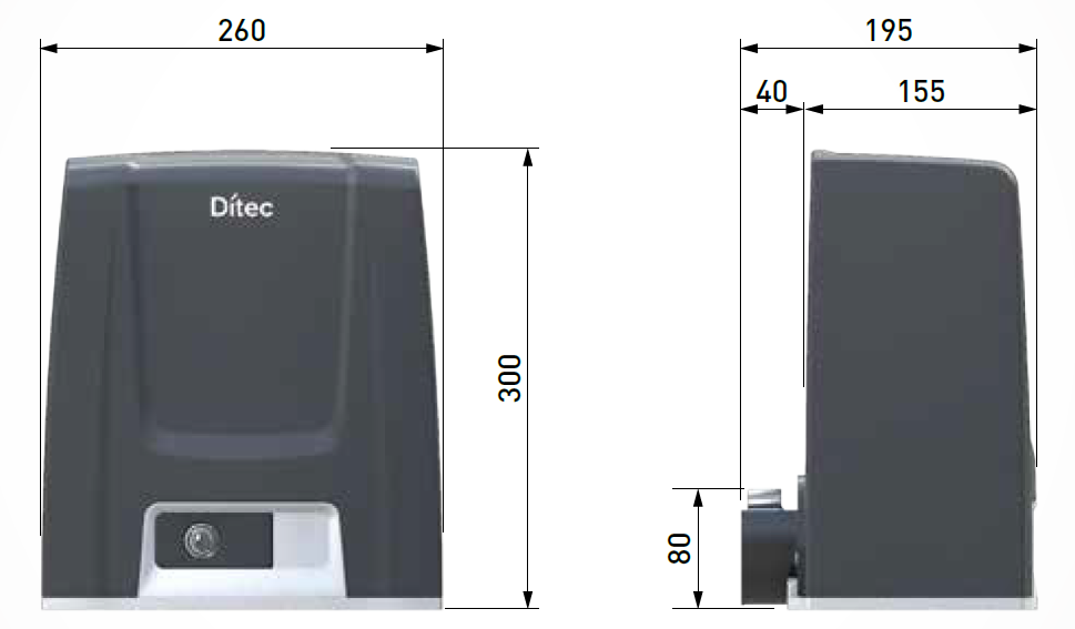 Elektromechanische aandrijving: voor schuifhekken tot 400 kg.